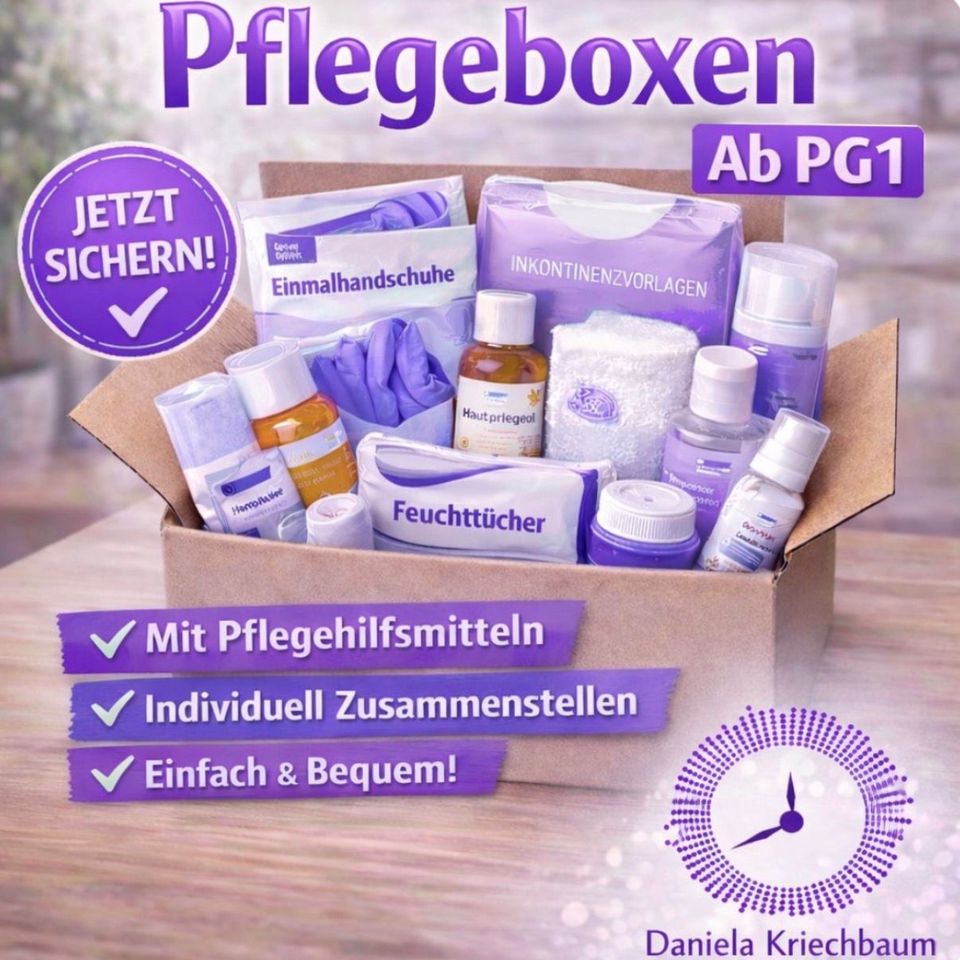 Liebe Kundschaft, liebe Interessenten - wir dürfen Euch die erfreuliche Mitteilung machen, dass wir Euch ab sofort auch die monatliche Pflegebox anbieten können, die bereits ab Pflegegrad 1 von der Krankenkasse bis zu 42,00 Euro bezahlt wird.